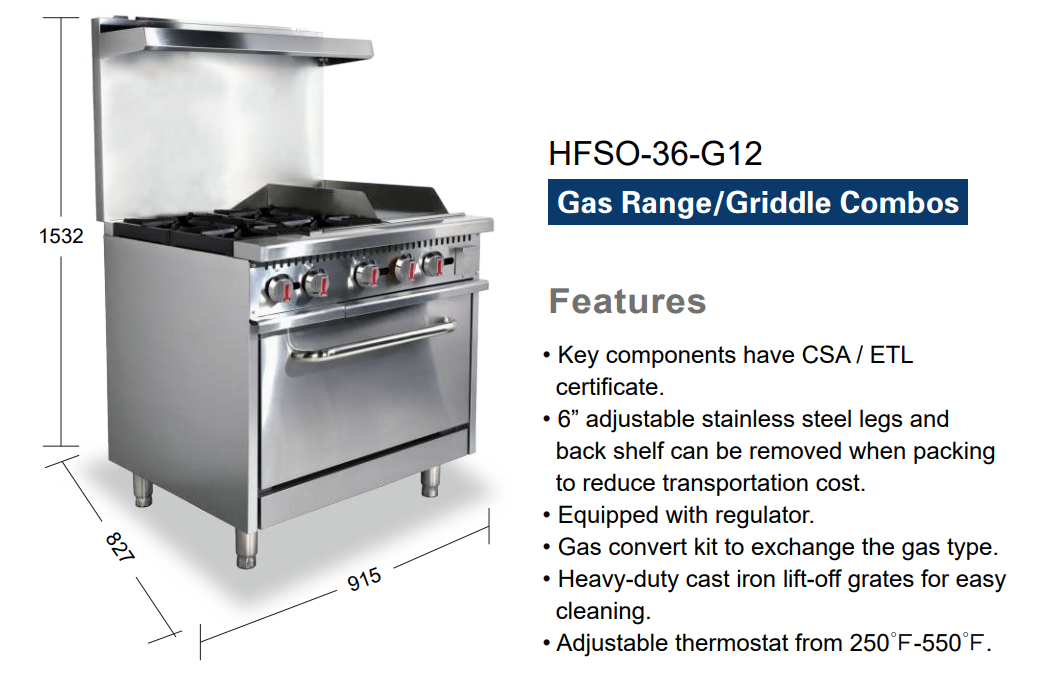 Gas Range/Griddle Combos
